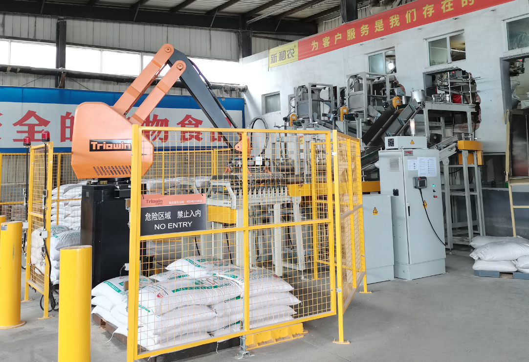隨著國(guó)內(nèi)產(chǎn)業(yè)結(jié)構(gòu)調(diào)整,畜牧行業(yè)轉(zhuǎn)型升級(jí)、新常態(tài)發(fā)展機(jī)遇期,加上和農(nóng)牧業(yè)集團(tuán)的創(chuàng)新式發(fā)展,在生產(chǎn)車(chē)間成品接包區(qū)引入自動(dòng)化設(shè)備碼垛機(jī)器人。